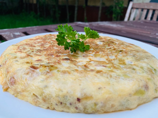 La última vez que viajé a Madrid organizamos una estupenda cena en casa de una de mis hermanas (de estas en las que cada uno lleva algo). Mi madre trajo esta tortilla tratando de emular una que había probado en un restaurante, y al primer bocado le estaba pidiendo la receta, qué buena estaba por favor!!!