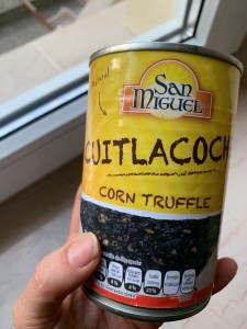 El huitlacoche es un hongo que crece entre los granos del maíz. En México, de donde es originario, se considera un manjar, y es curioso porque en otros países productores de maíz se considera una plaga! Y la verdad es que es comprensible, mirad qué aspecto mas feo tiene el pobre!