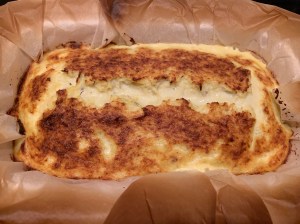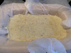 En ambos casos, volcamos la mezcla en el molde que vayamos a emplear (yo utilicé uno alargado de los de bizcochos). Os recomiendo forrar el molde con papel de horno, de esta forma desmoldarlo será coser y cantar.