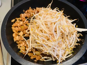 Cuando vayamos a comer, ponemos a calentar de nuevo la cazuela (si es que lo estamos haciendo en dos tandas), añadimos los brotes de soja bien lavados y dejamos 2 minutos.