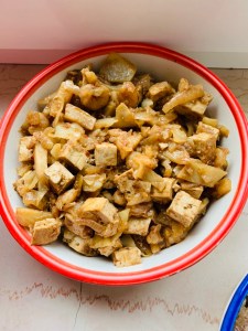 - 1 pechuga de pollo (entera, sin filetear) o un bloque de tofu firme de 200 gr