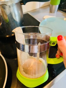 Pasamos esta mezcla a una jarrita y la dejamos reposar unos minutos. Lo de la jarrita es clave para conseguir que queden redonditas.