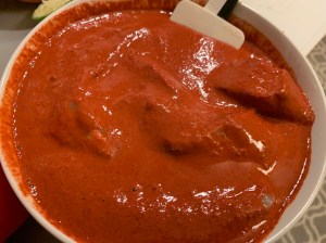 Pasado ese tiempo, calentamos una cazuela a fuego medio y volcamos el pollo junto con toda la marinada para que cocine durante 30-40 min (en olla express sería suficiente 20 min contando desde que suben los 3 aros). Si no es olla express, alternaremos periodos de tapa abierta y cerrada para que la salsa coja textura y se evapore un poco el líquido.