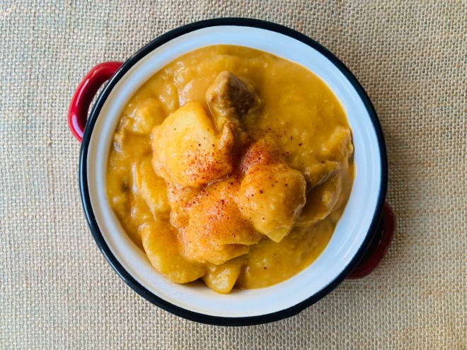 Estas patatas fueron el plato que comimos la primera vez que fuimos allí. Como veréis debajo, sus ingredientes son simplísimos y la forma de hacerlas también. Cuanto mejores sean los ingredientes (hay patatas y patatas, y también chorizos y chorizos!), más ricas os saldrán, pero casi más importante aún es que las hagáis a fuego bajo y durante mucho tiempo, para que suelten su almidón y queden taaan cremosas como en la foto. Si no, os doy el truquitruqui al final del post 😉 .