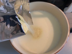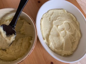 - 1 sobre de puré de patata en polvo (suelen tener 125 gr) – fijaos que sea prácticamente todo patata; también podéis hacerlo vosotros mismos cociendo las patatas en abundante agua con sal hasta que estén blanditas