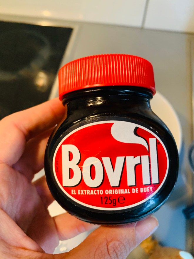 El de hoy tiene carne de ternera y bovril (concentrado de buey, lo venden en todas partes aunque quizá no os hayáis fijado), dos ingredientes que, si bien no son los más saludables del mundo (la OMS recomienda limitar el consumo de carne roja), no pasa nada por tomarlos de vez en cuando.