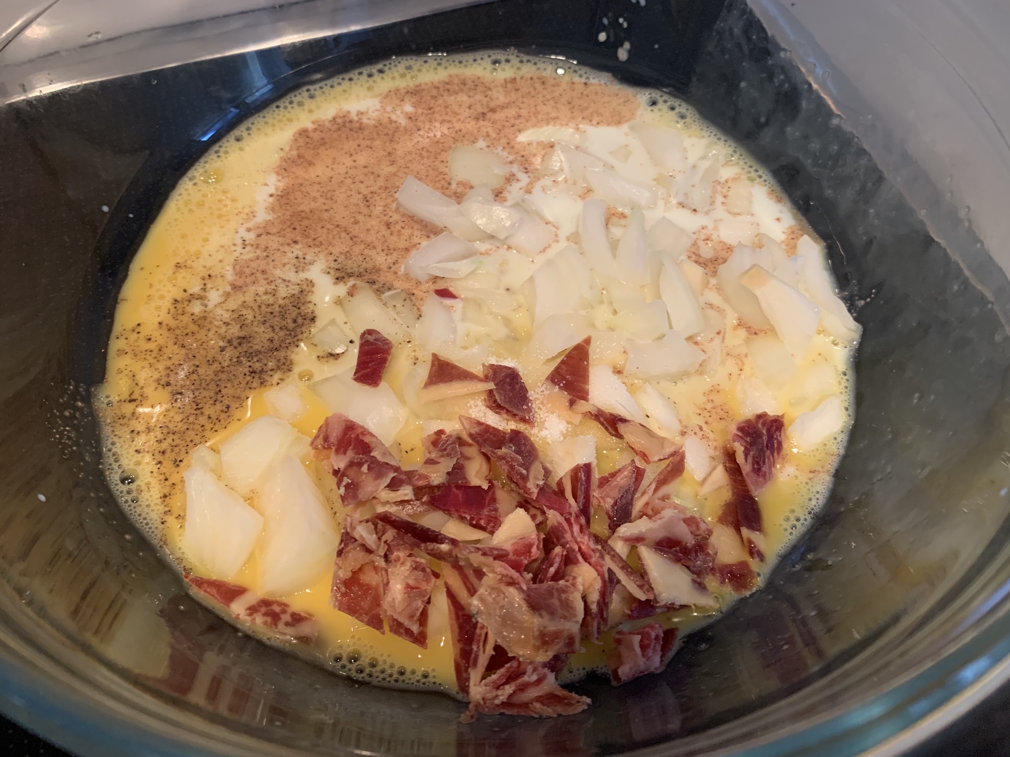 En un cuenco grande batimos el huevo y le agregamos todos los restantes de la lista (menos los de la salsa evidentemente).