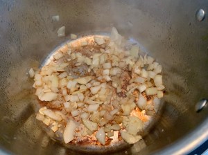 Mientras, vamos picando la cebolla en cuadraditos pequeños.