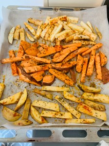 Para acompañar nuestra carne hoy os propongo hacer unos boniatos al estilo patatas rusticas. Desde que los hice por primera vez con estos nuggets los hemos repetido 1000 veces, hasta mi padre se declaró adicto total cuando se los preparé!