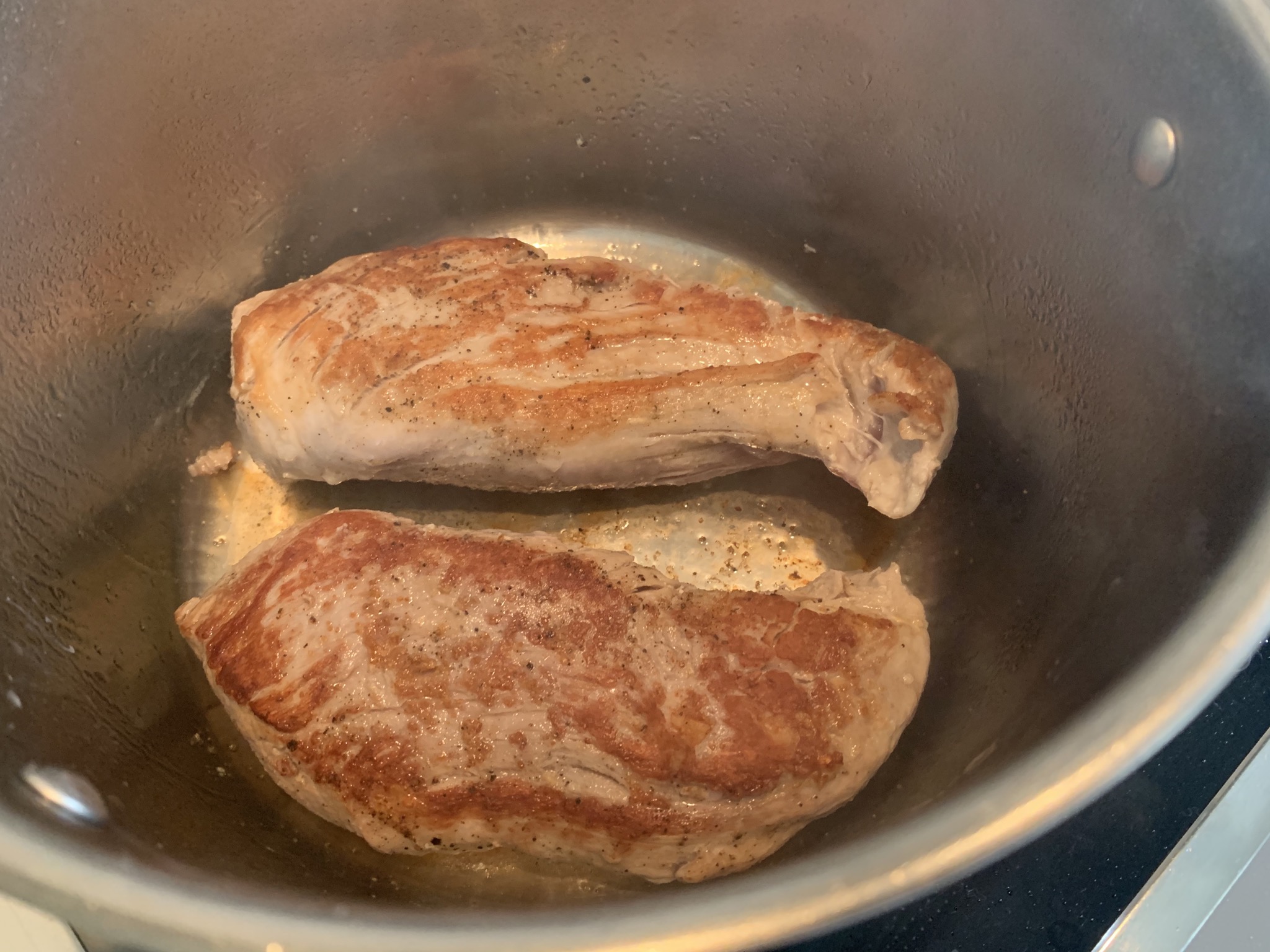 Comenzamos salpimentando ligeramente los solomillos en crudo.