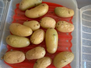 • 300 gr de patatas (podéis comprarlas ya cocidas en conserva, aunque para mi gusto la textura en la ensaladilla queda mejor cuando las cocemos en casa, porque las dejamos más «chafadillas»)