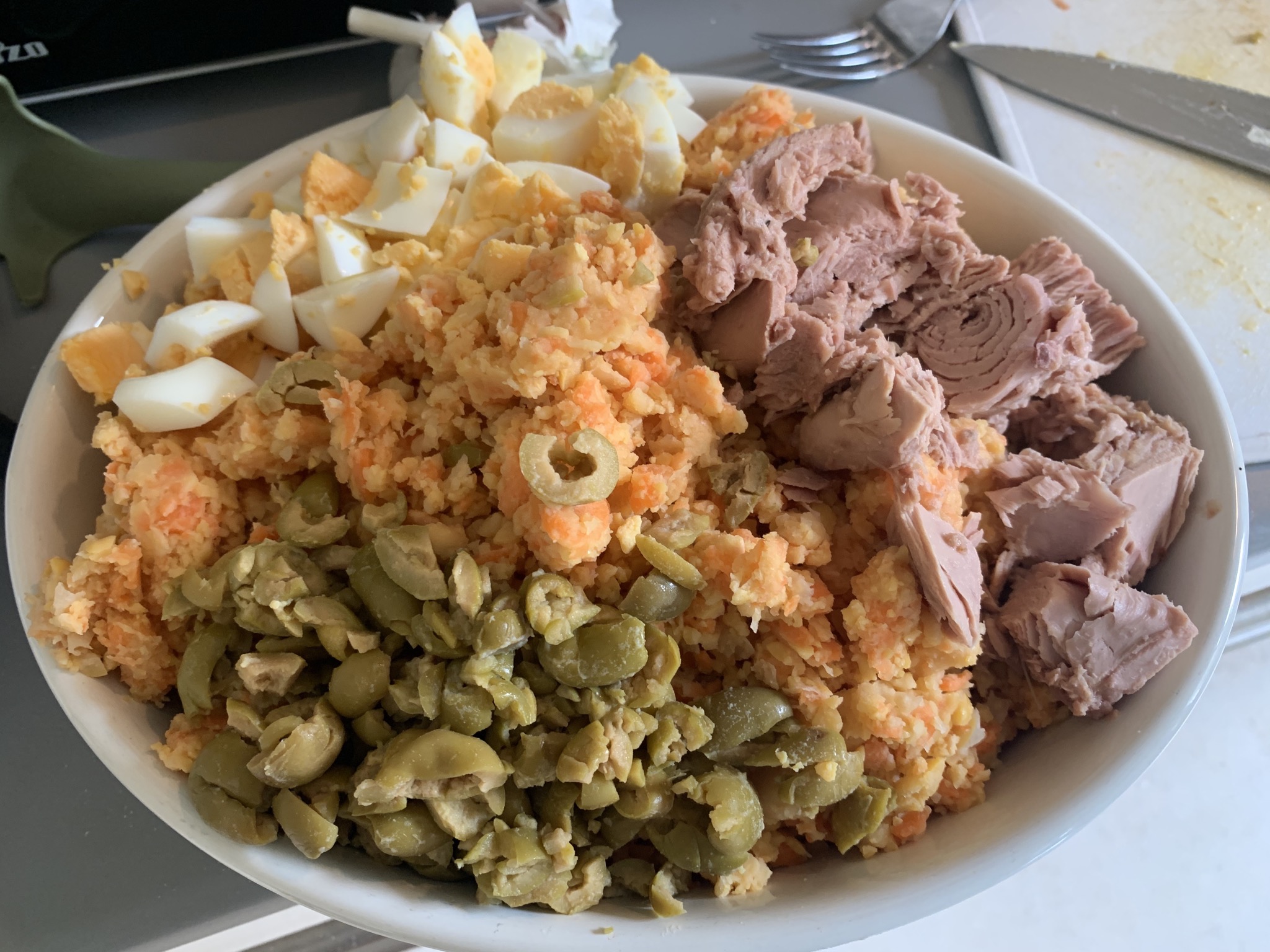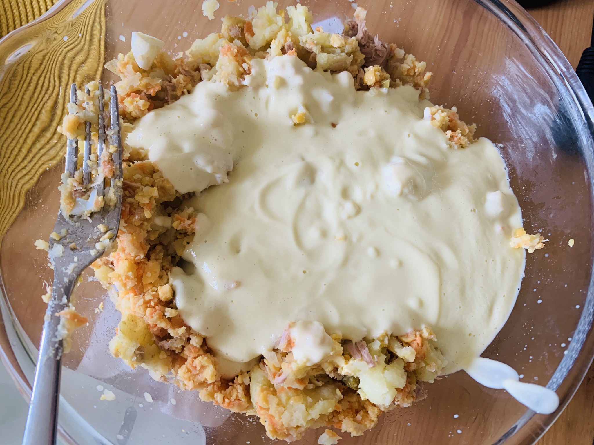 Nunca la había hecho en casa, y al ver la receta tradicional traté de pensar en una versión algo más nutritiva y aligerada, y maaadre mía, estaba DELICIOSA!!!! Estoy deseando que la probéis. Lo de la mayonesa ha sido un descubrimiento que encabeza mi lista de 2020 de momento, vais a alucinar, pero no me deis las gracias a mí sino a este artículo de ABC en la que la vi recientemente!