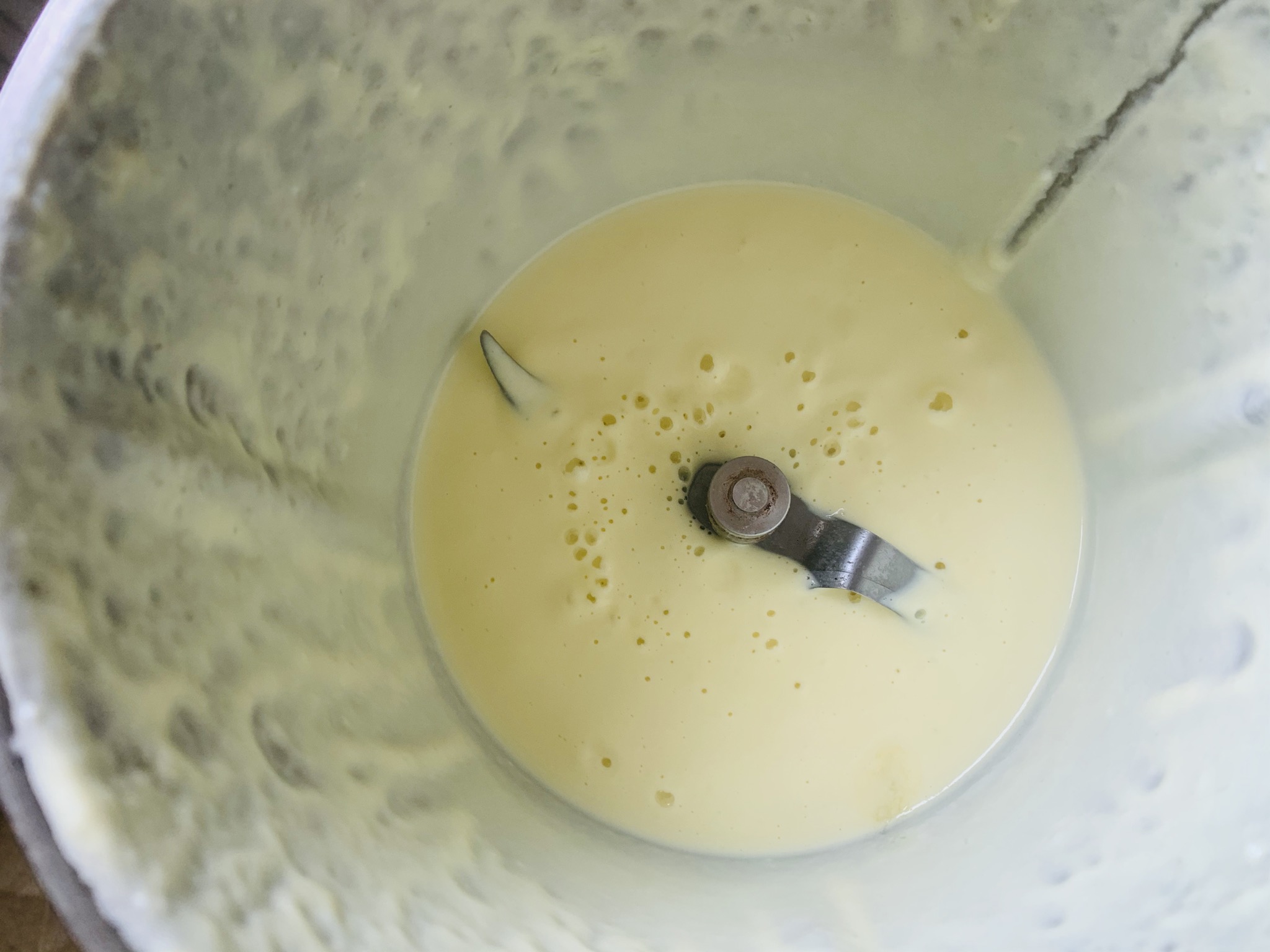 Vamos por último con la mayonesa 2.0. Simplemente tenemos que triturar el calabacín (escurrido) junto con los demás ingredientes del listado. Así de fácil, probadla y alucinaréis, aunque al enfriarse es cuando alcanza su mejor momento!