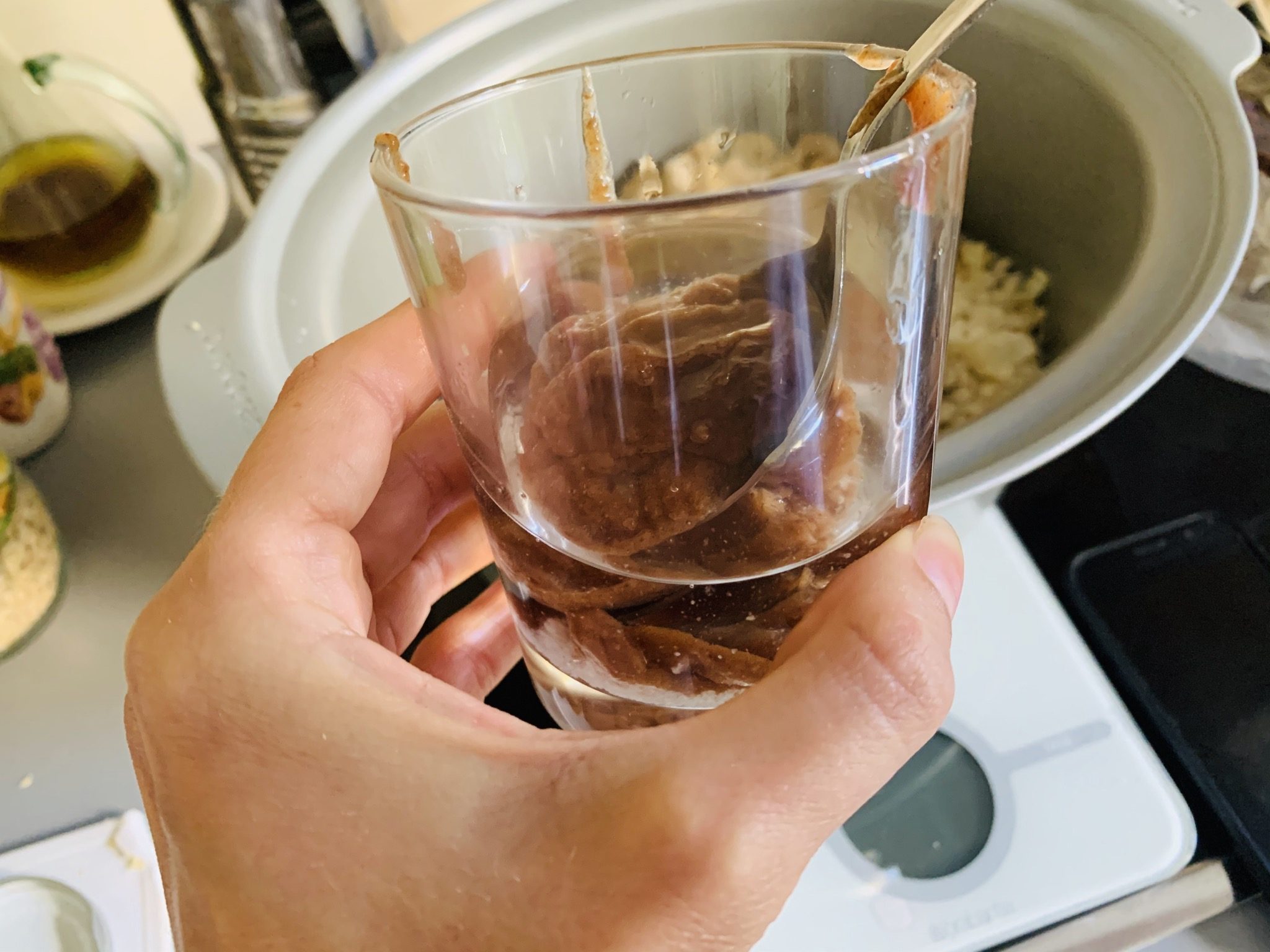 Removemos muy bien para que todo esté bien pegajoso. Si no lo esta, agregad mas aceite y endulzante a partes iguales – TRUQUITO 2.