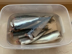 - si habéis comprado las sardinas enteras, habrá que limpiarlas quedándonos como mucho con el cuerpo, las espinas y la piel (es decir, hay que retirar las escamas y las vísceras con cuidado)
