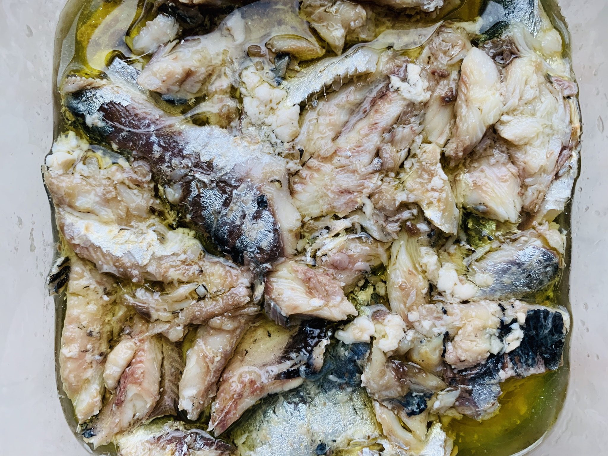- si habéis comprado las sardinas enteras, habrá que limpiarlas quedándonos como mucho con el cuerpo, las espinas y la piel (es decir, hay que retirar las escamas y las vísceras con cuidado)