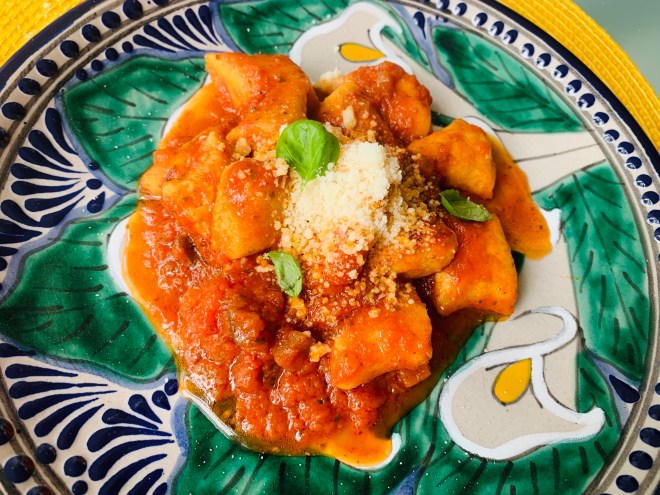 Qué ganas tenía de compartir esta receta cuando la lograse con éxito… Después de hacer los malfatti me entraron ganas de probar con los ñoqui, más conocidos, pero muchas recetas que veía me parecían engorrosas o demasiado contundentes. De modo que decidí hacer una adaptación más nutritiva y sencilla a mi manera, y el resultado fue espectacular, aunque esté feo que yo lo diga!