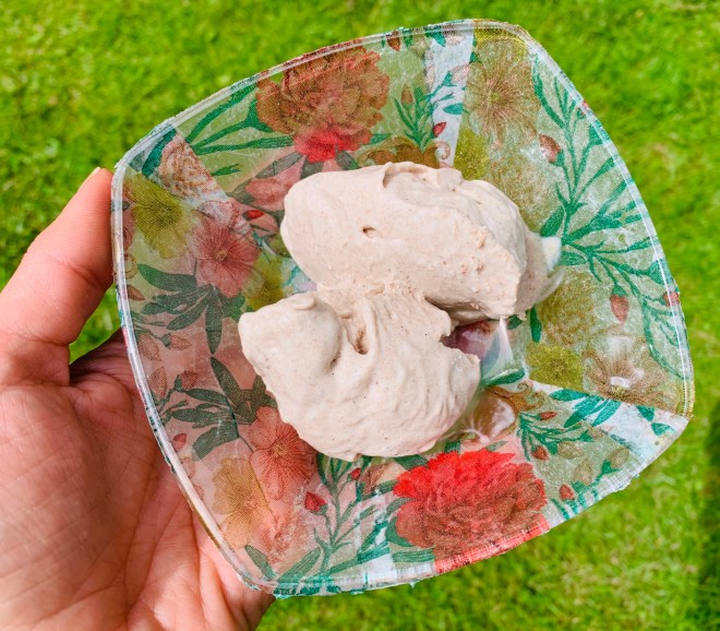 ➡ Es un helado bastante sabroso, por lo que no lo veo como para acompañar otros postres. Es delicioso tal cual, o con unas nueces por encima.