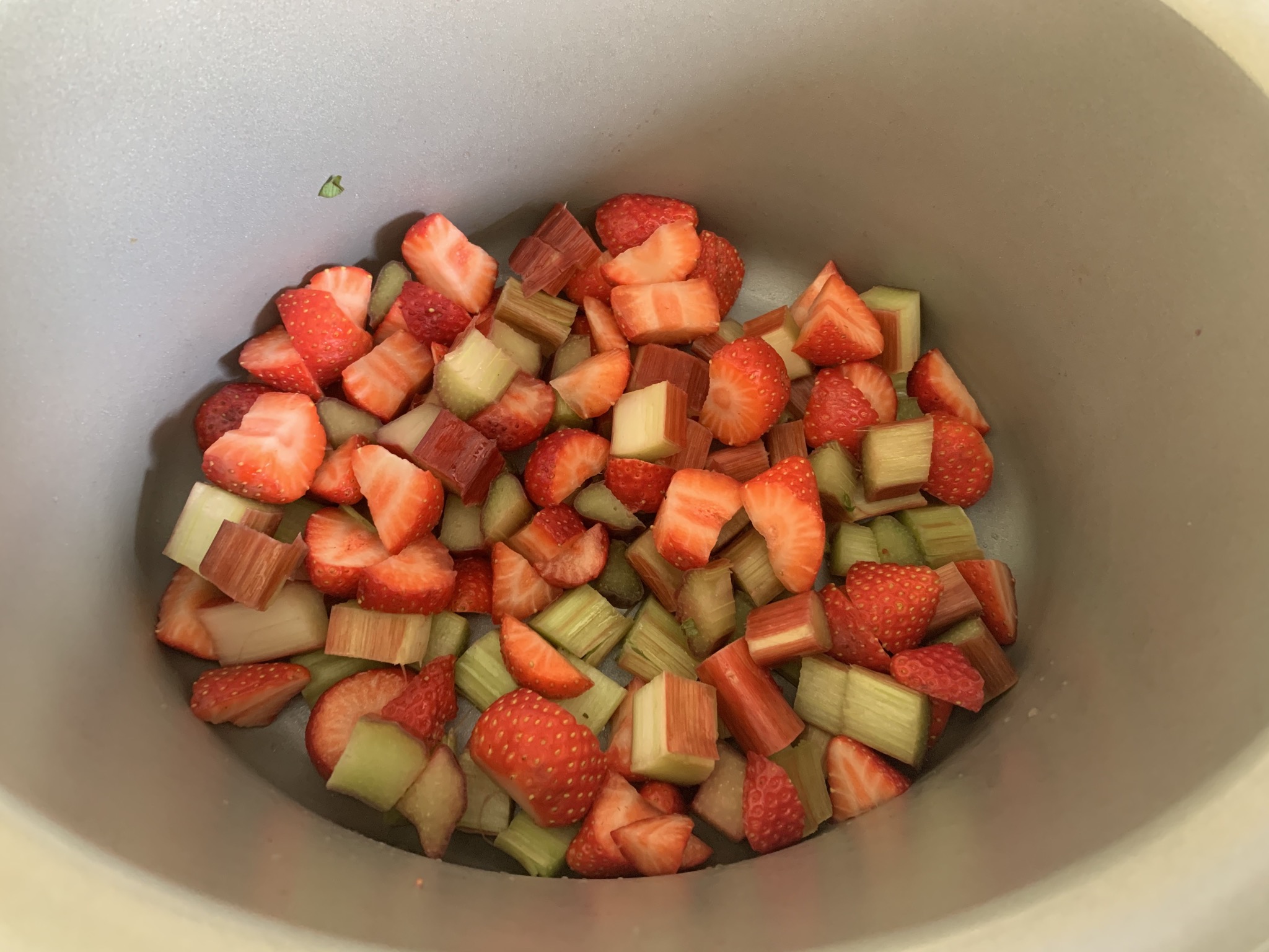 - Unos 400 gr de la fruta escogida manzana, pera, melocotón, albaricoque, cualquier fruto rojo (fresas, frambuesas, arándanos), ruibarbo si encontráis