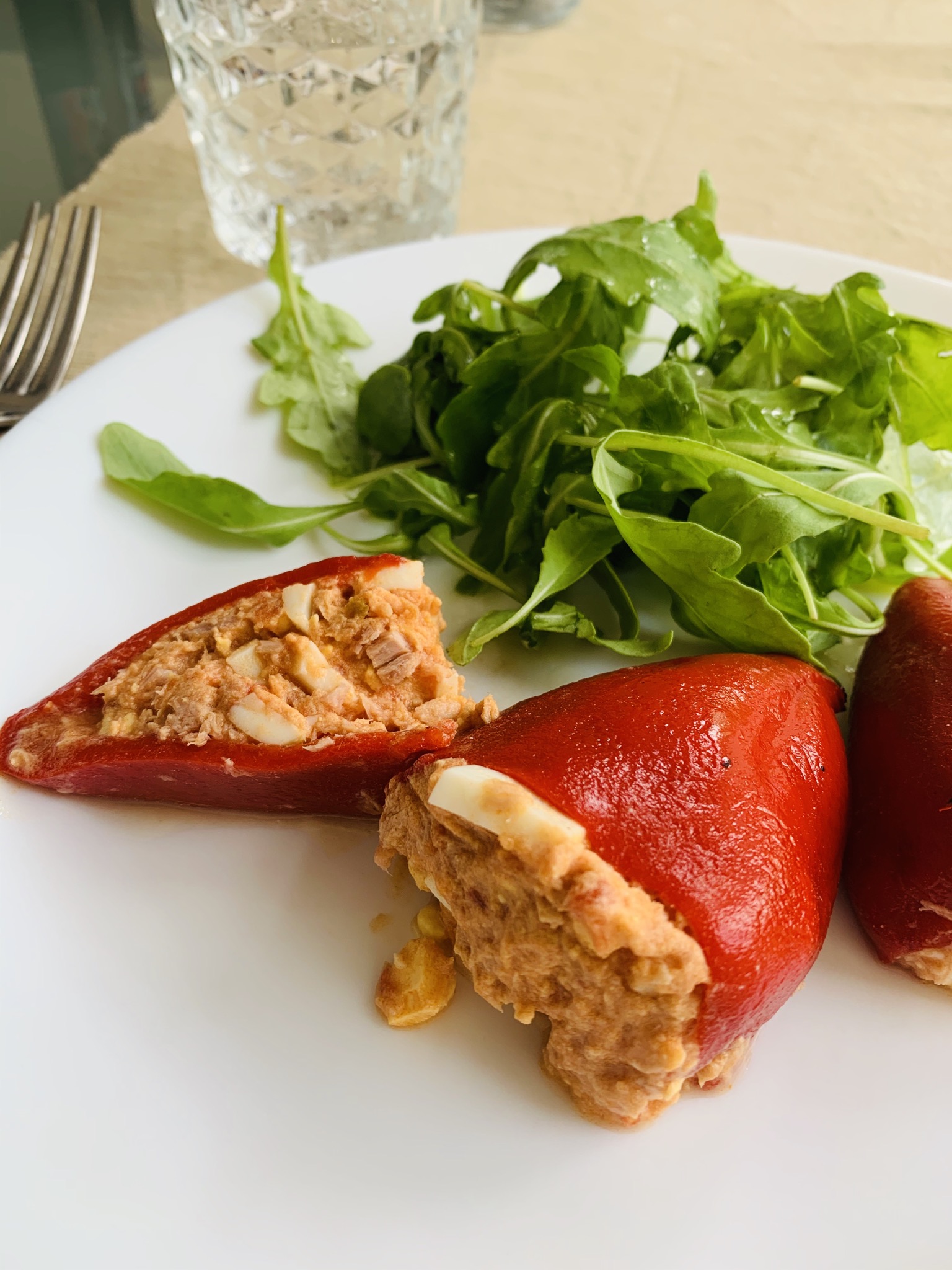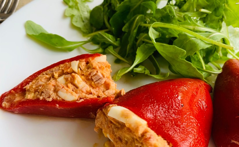 El otro día os enseñaba por Instagram una comida muy rápida que preparé al llegar de vacaciones. Siempre que voy por España aprovecho para traerme ciertas cosas que aquí no encuentro (o las hay pero a precios desorbitados), como los pimientos del piquillo.
