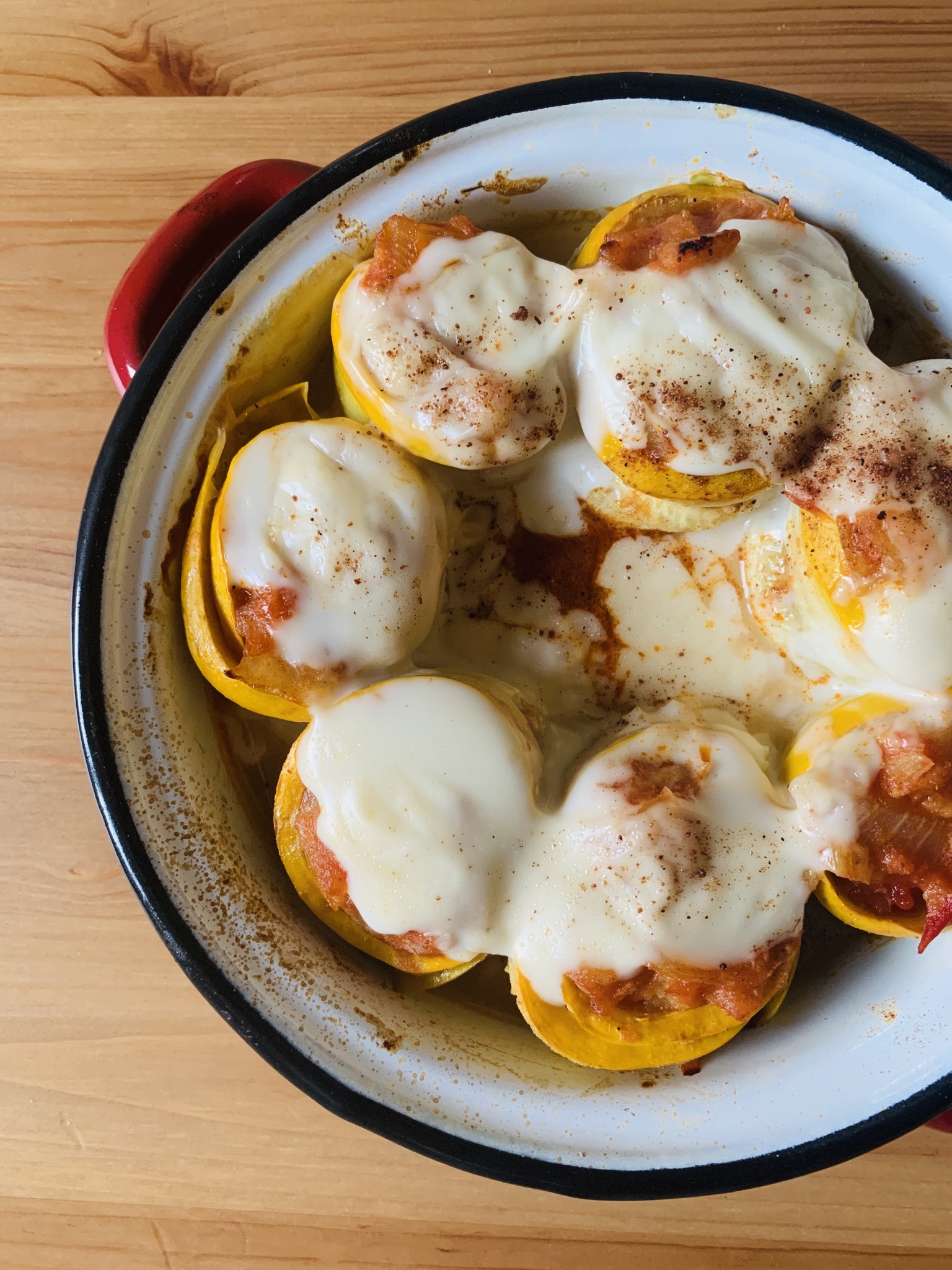 Hoy os traigo una receta que vi hace tiempo en el perfil de Goutdhestia y que me conquistó por completo (al verla y después de tomarla jejeje). Como aquí en Luxemburgo el verano tiene días fresquitos, encender el horno no es ninguna locura, pero no la compartí antes con vosotros porque entiendo que por España el horno también está de vacaciones por un tiempecito jejeje.