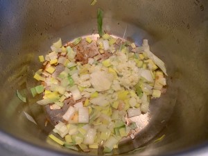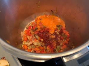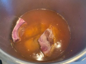 Cubrimos con agua 4 dedos por encima del contenido y dejamos que cocine a presión 15 minutos (o bien media hora tapado a fuego medio en cazuela normal).