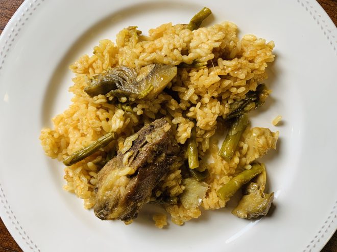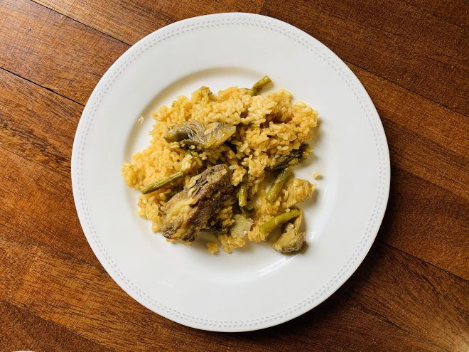 Ya sabéis lo fan que soy de hacer arrocitos los fines de semana… Casi siempre cae uno, aunque generalmente no innovo demasiado ya que tenemos claro los que más nos gustan: paella y risotto de calabaza! Pues bien, estas Navidades mi madre nos sorprendió con un pedazo de arroz que va a ir sin duda a mi lista de arroces frecuentes: un arroz con costillas que no podía ser más sabroso y tierno!