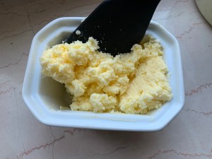 De modo que me fui a comprar el brick de nata, y a los 5 minutos tenía mi propia mantequilla casera, alucinante… Os recomiendo que, ya que os ponéis, compréis la nata de la mejor calidad que encontréis, si veis alguna que parezca más natural o de vacas bien cuidadas lanzaos a por ella (eso si, como leeréis más abajo, tiene que ser una nata de mínimo 35% de materia grasa, que es la que sirve para montar, no la ligera o de cocinar).
