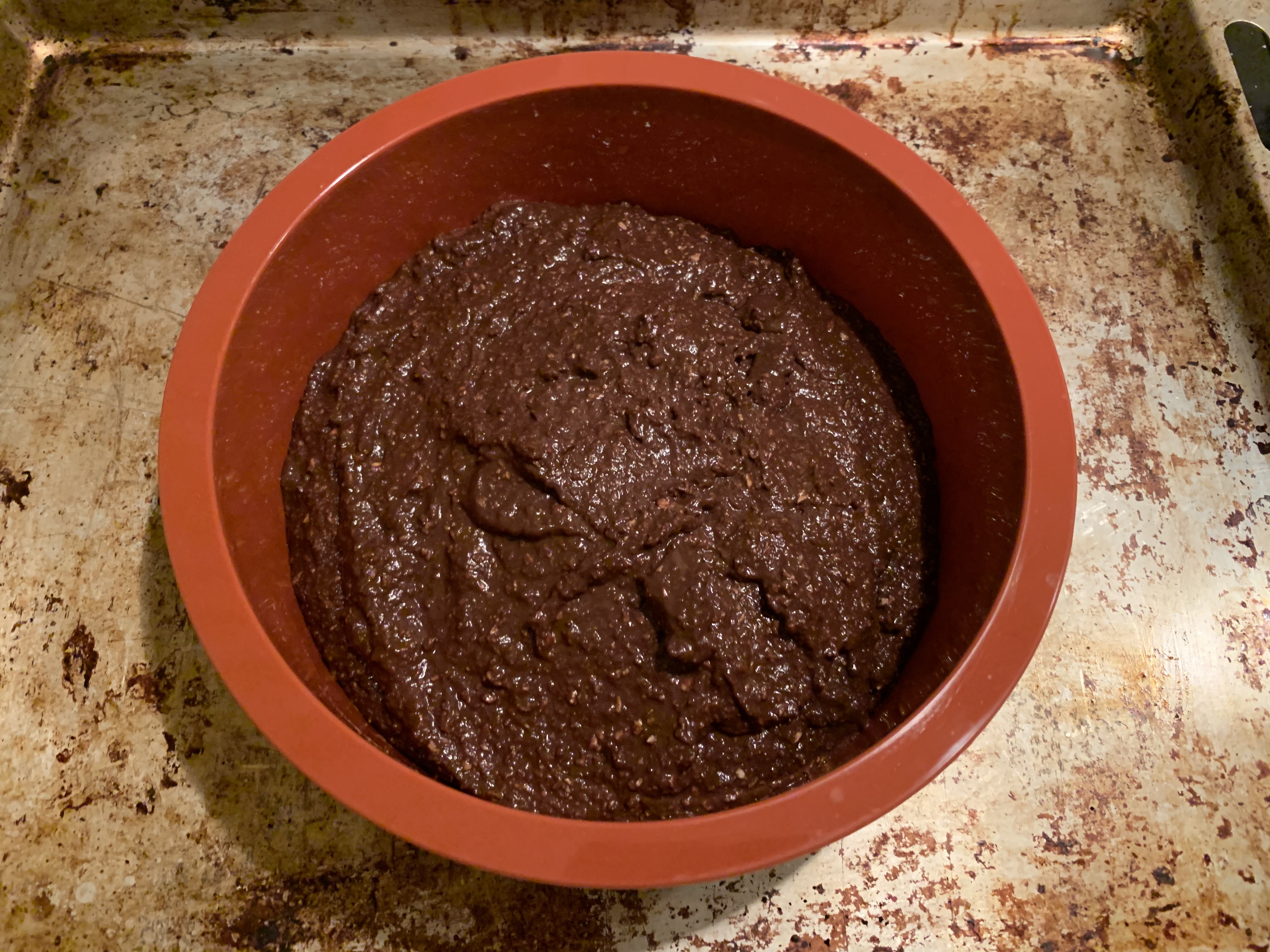 Pasamos la mezcla a un molde no demasiado grande apto para horno (engrasado, si no es de silicona) y metemos en el horno 25 minutos.