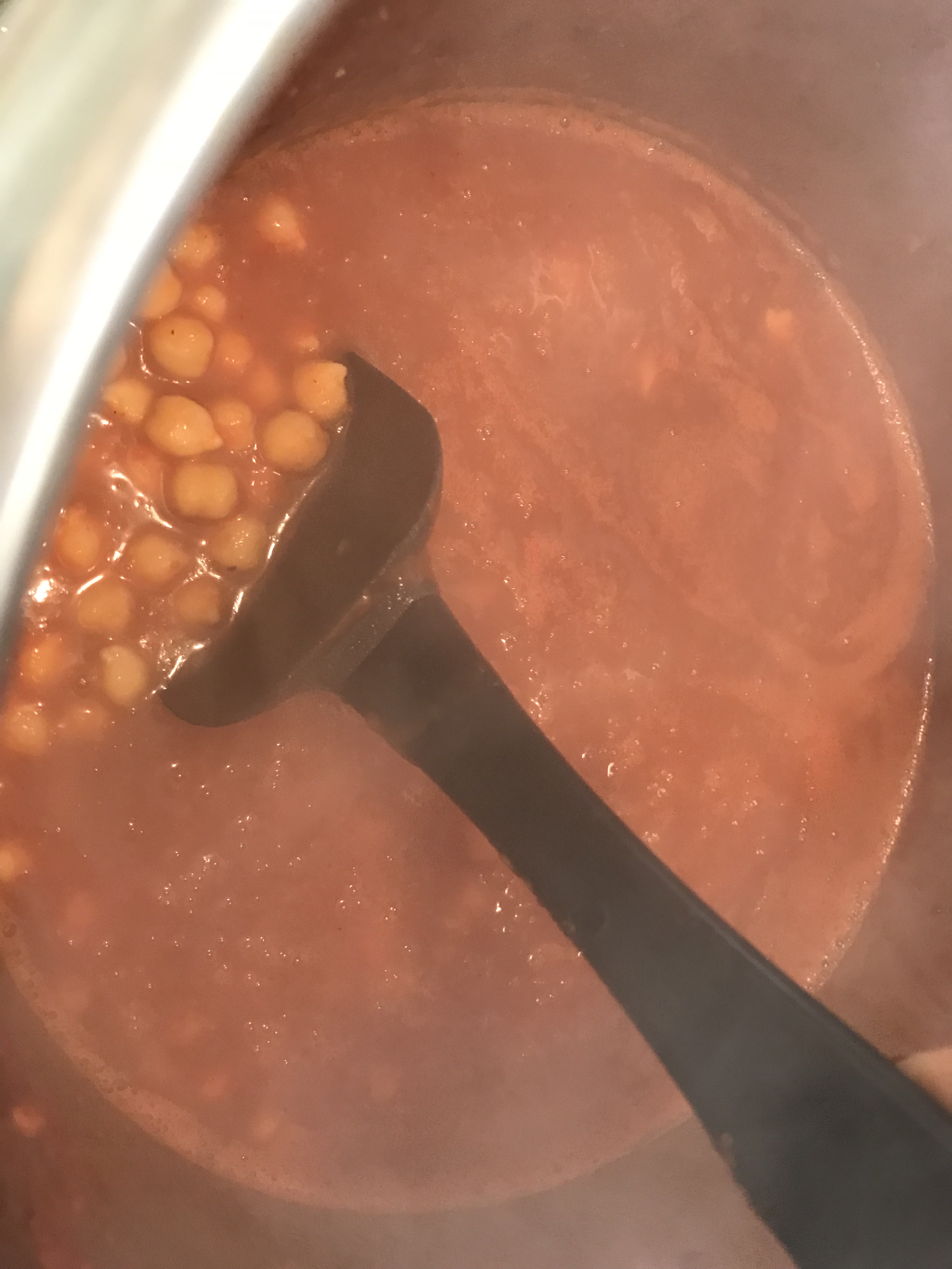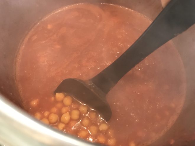 Subimos al máximo y cuando esté hirviendo incorporamos los garbanzos.