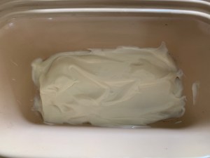Pasamos a un bote de cristal y, cuando esté templado, pasamos a la nevera para que adquiera consistencia de leche condensada – necesita unas cuantas horas, incluso de un día para otro.