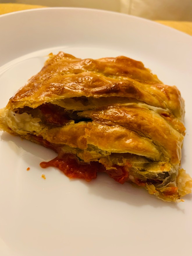 - 4 cucharadas soperas de tomate concentrado (OJO, no es tomate frito ni triturado ni tipo ketchup, debe poner “concentrado”, de otro modo el hojaldre quedaría blandurrio en lugar de crujiente)