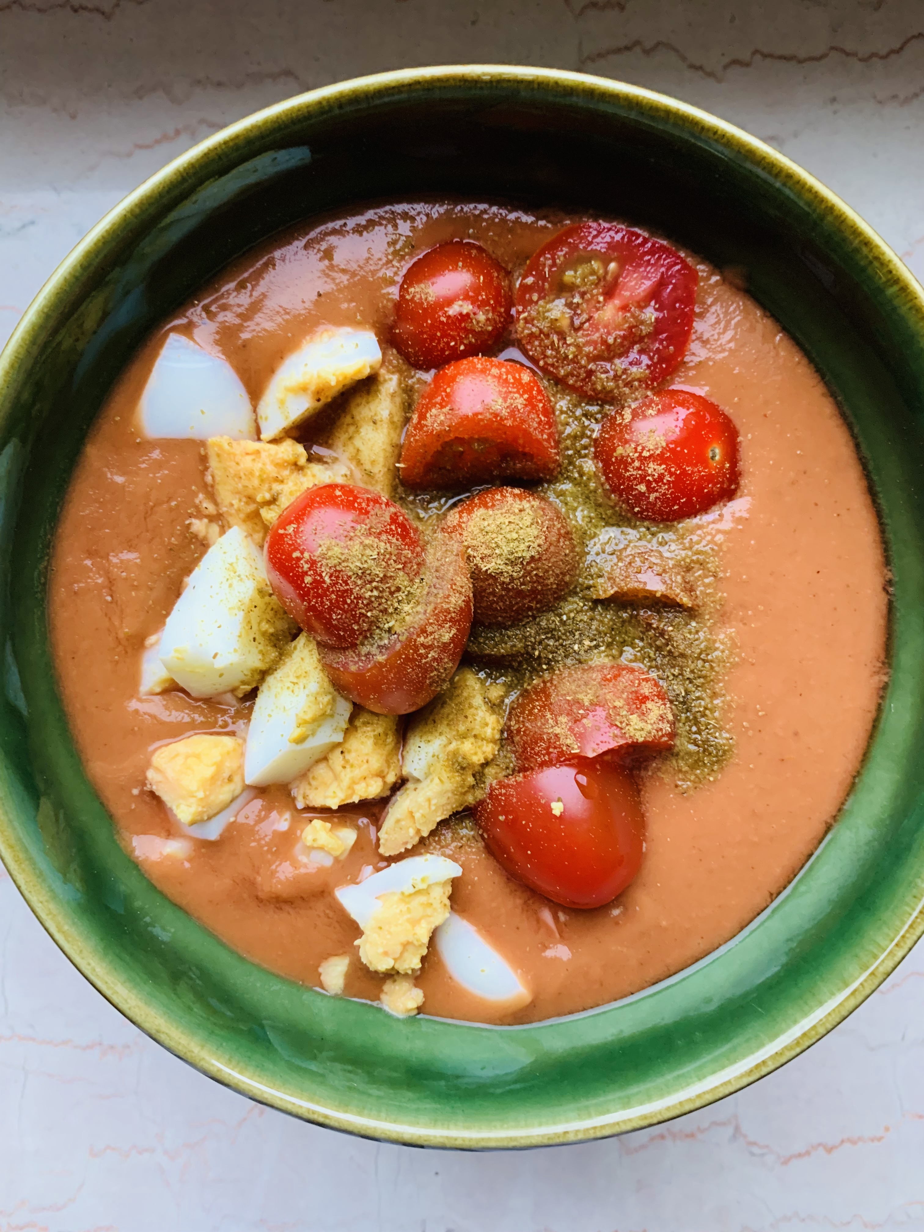 A nivel culinario estoy tirando de congelador y despensa, pero también de recetas que no llevan mucho tiempo y que estén ricas y sean nutritivas, como este gazpacho.