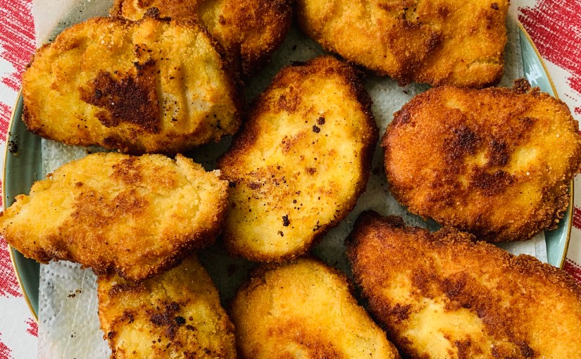 Tuve la suerte de que vinieran mis padres a estar con nosotros y conocer al bebé, y mi madre de paso me mimó con platos que borda, como las pechugas villeroy que hoy os traigo. Ya estaban en el blog, pero le he dado una revisión al post para que os resulte aún más sencillo replicarlas!