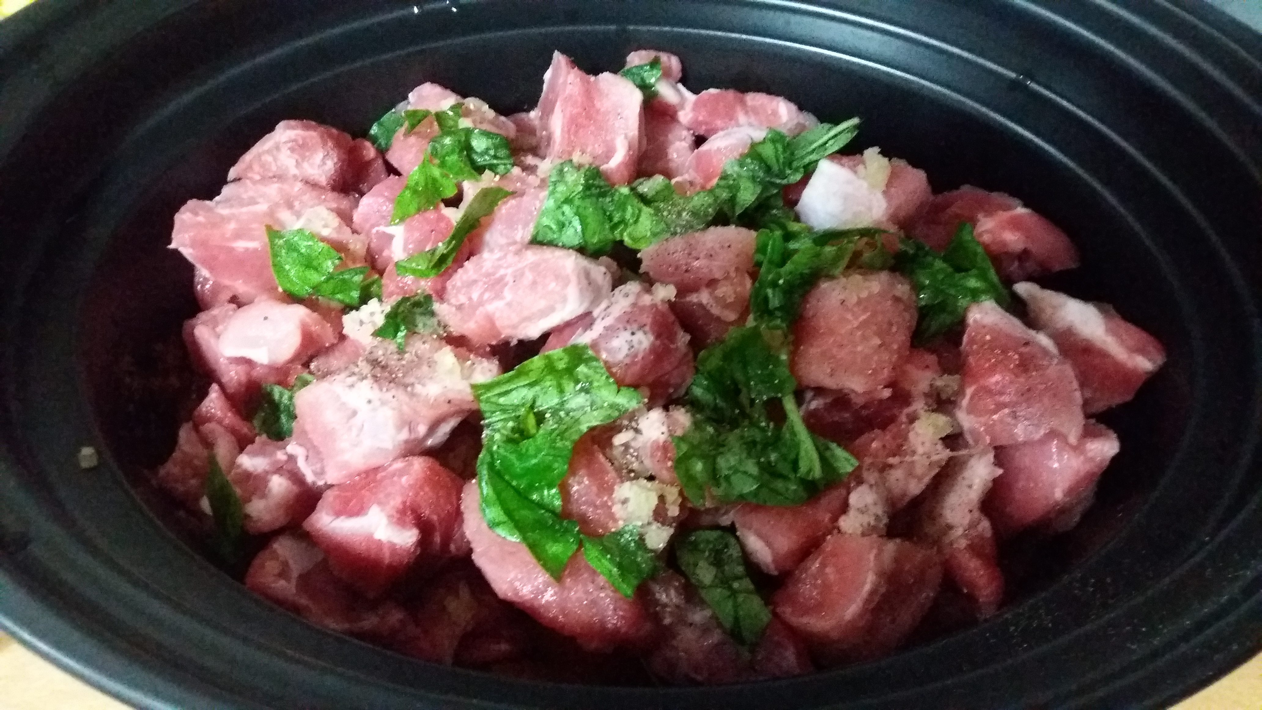 Si por casualidad tuvieseis CrockPot, simplemente deberíais poner todos los ingredientes en la olla (las verduras cordatitas) y encima del todo los trozos de carne, y dejar cocinar: