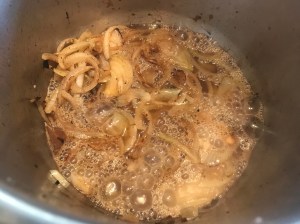 Vertemos la cerveza en la cazuela, guardando un chorro para disolver en él la maizena. Dejamos a fuego fuerte 2 minutos para que se evapore el alcohol.