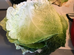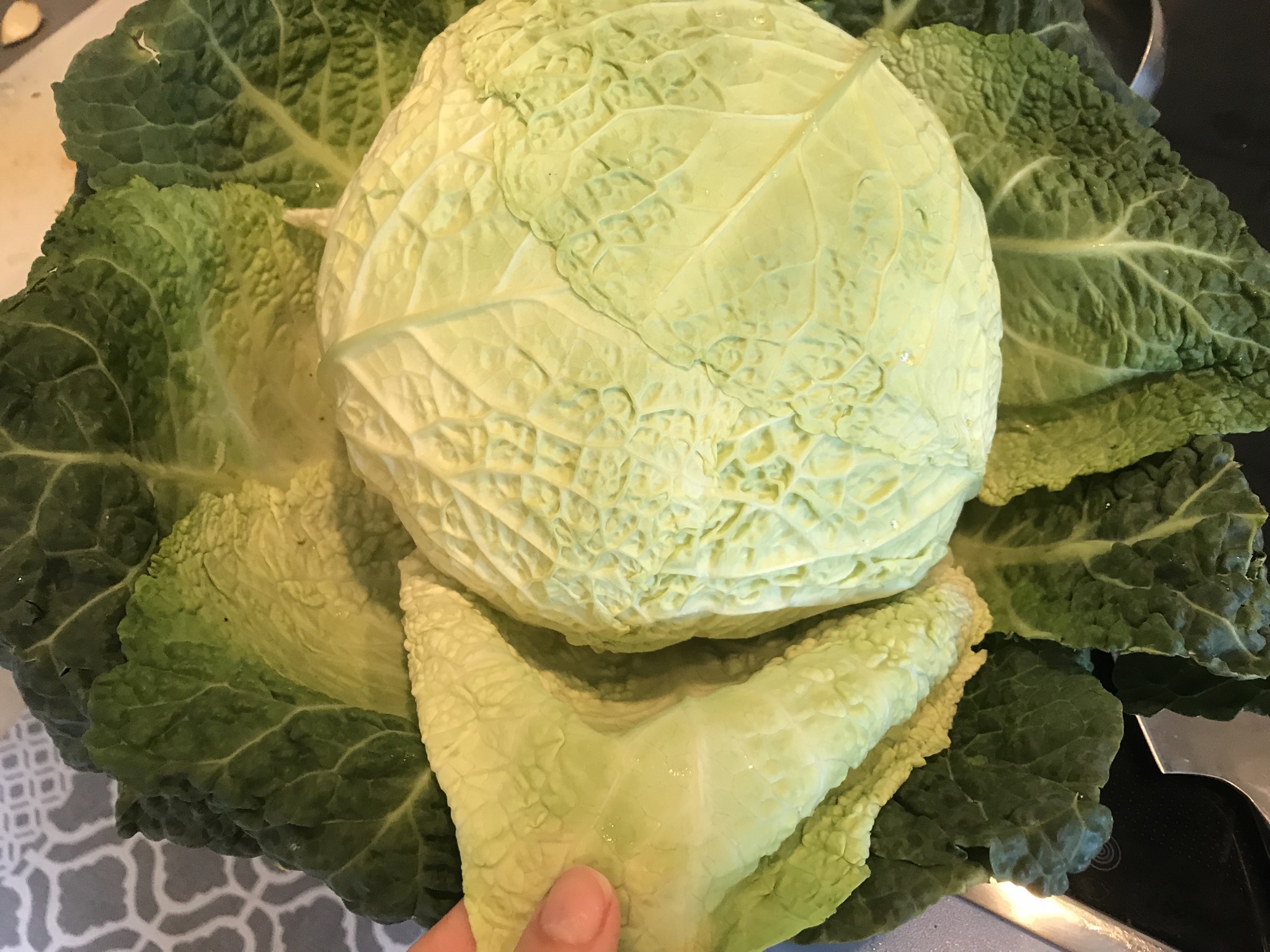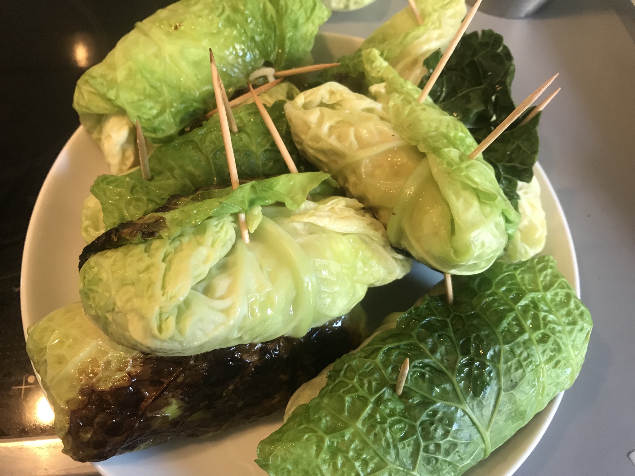 - Separamos y lavamos bien las hojas de col (siempre tienen tierra). Las cocemos un poco (al vapor o en agua) para que no estén tan duras.