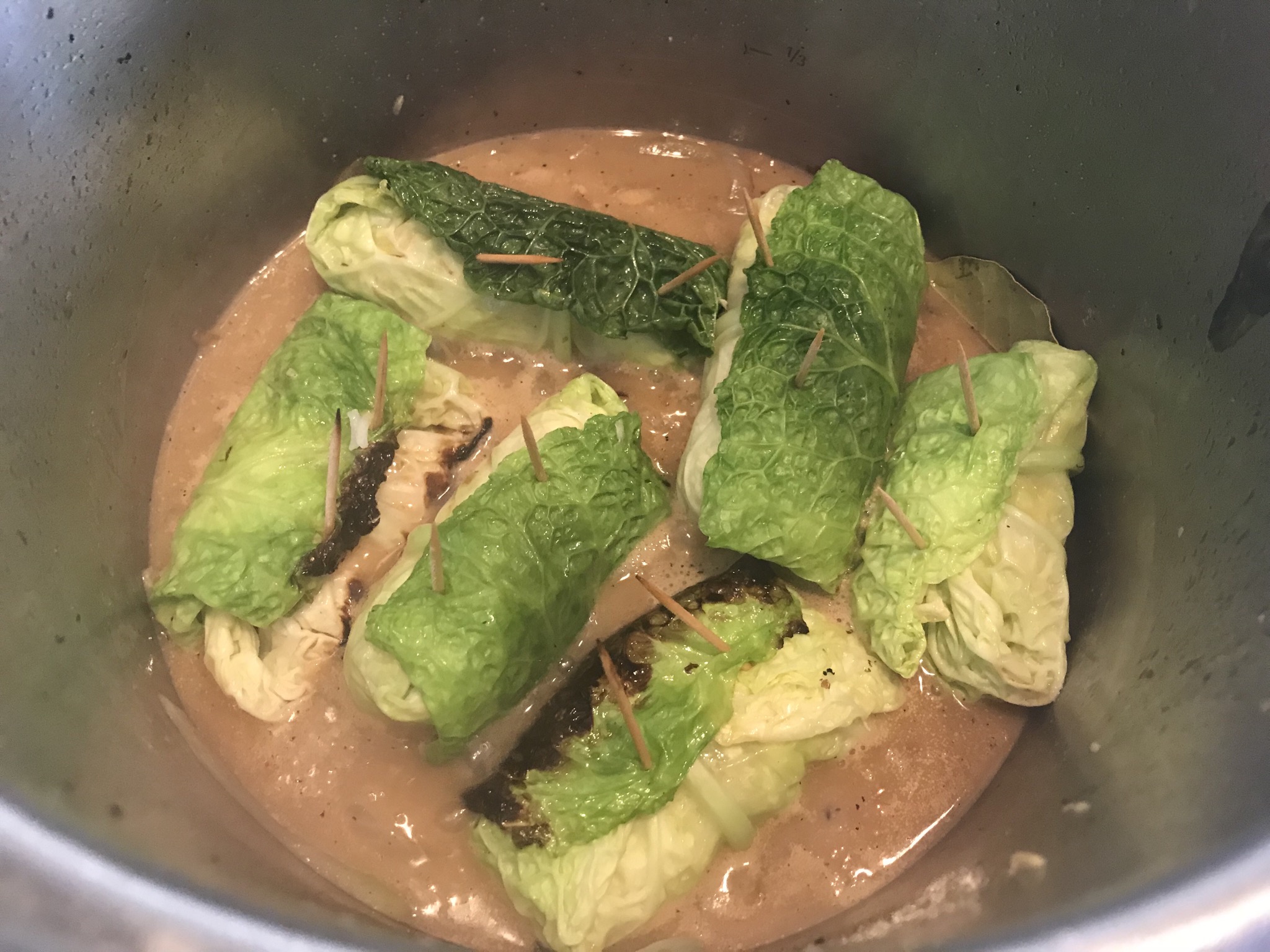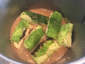 Dejamos a fuego medio durante 15 minutos, dando la vuelta a los rollitos de vez en cuando. Probamos para rectificar de sal o pimienta si es necesario y servimos bien caliente!