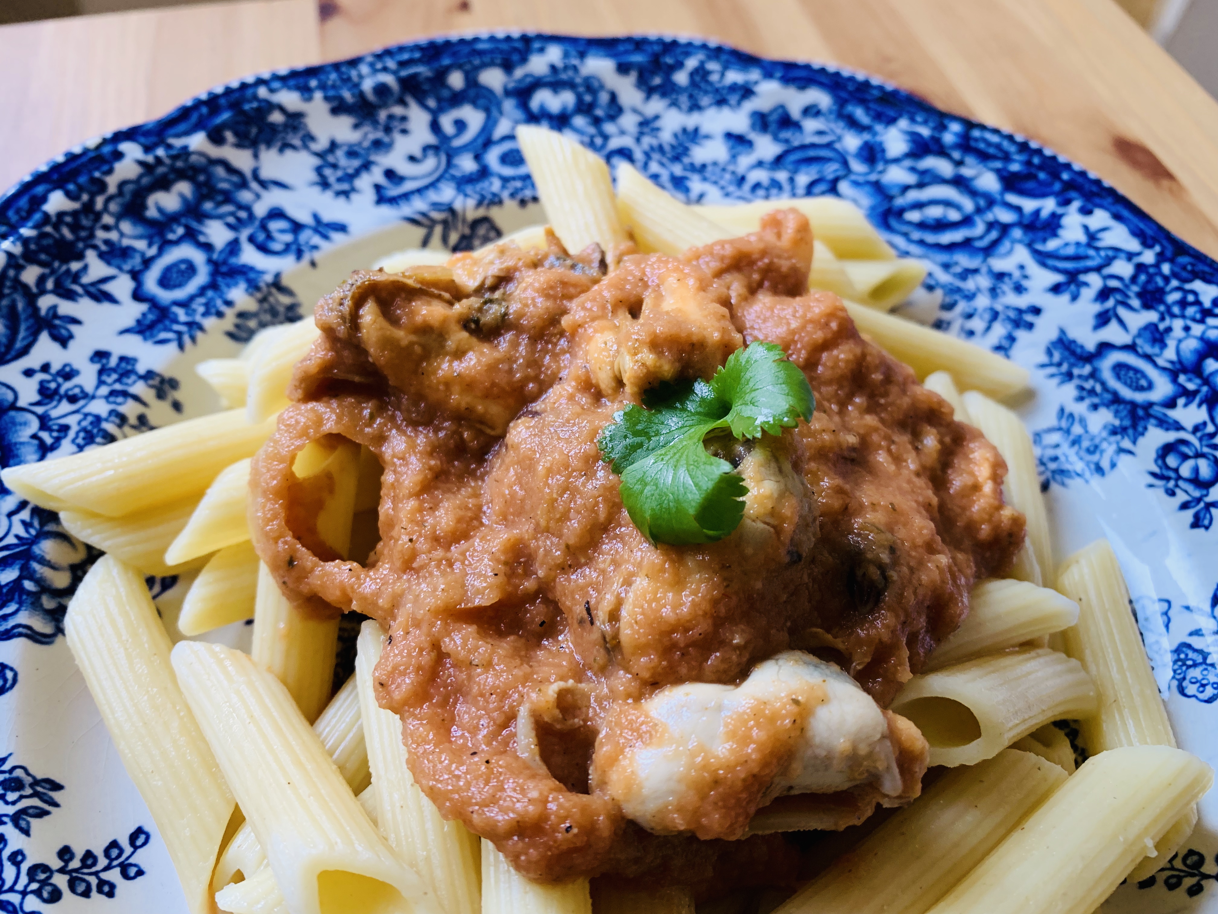 Si no conocéis el plato, es una pasta picante con salsa de tomate y ajo.