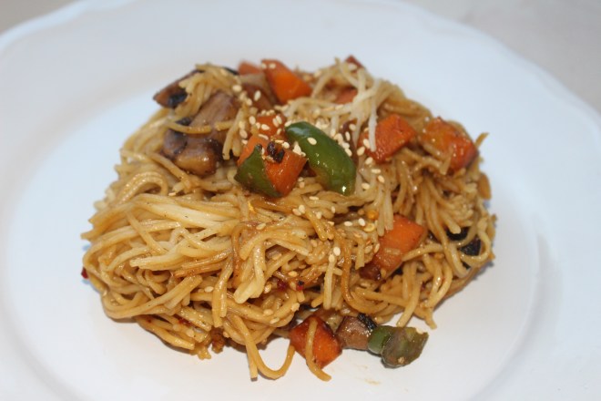 • 300 gr de noodles (los que queráis: de arroz, de trigo, finos, gruesos,  al huevo, ramen, udon… incluso espaguetti si no tenéis otra cosa!)